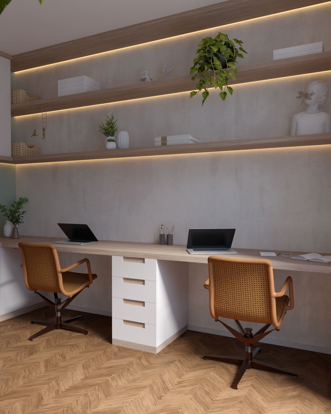 Cada projeto é pensado para refletir quem o vive, unindo estética, funcionalidade e bem-estar. Materiais naturais, paleta suave e integração dos espaços trazem aconchego e conexão com a natureza. Ambientes como living, cozinha, home theater, home office, suítes e banheiros foram projetados para equilibrar praticidade, sofisticação e identidade, transformando a casa em um verdadeiro refúgio.