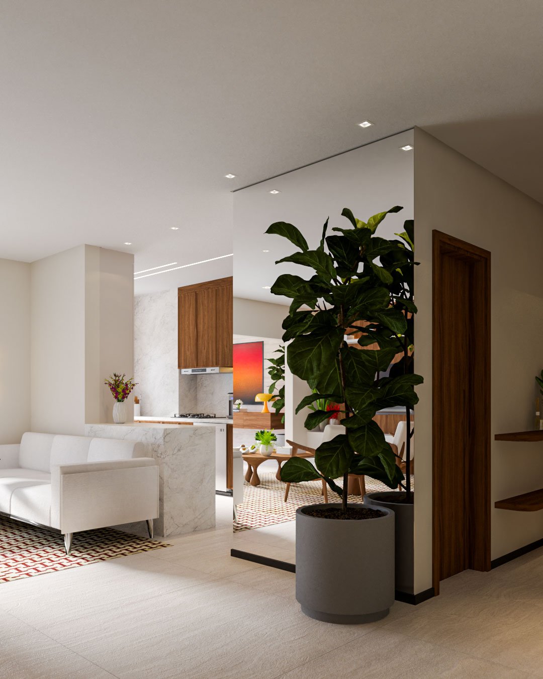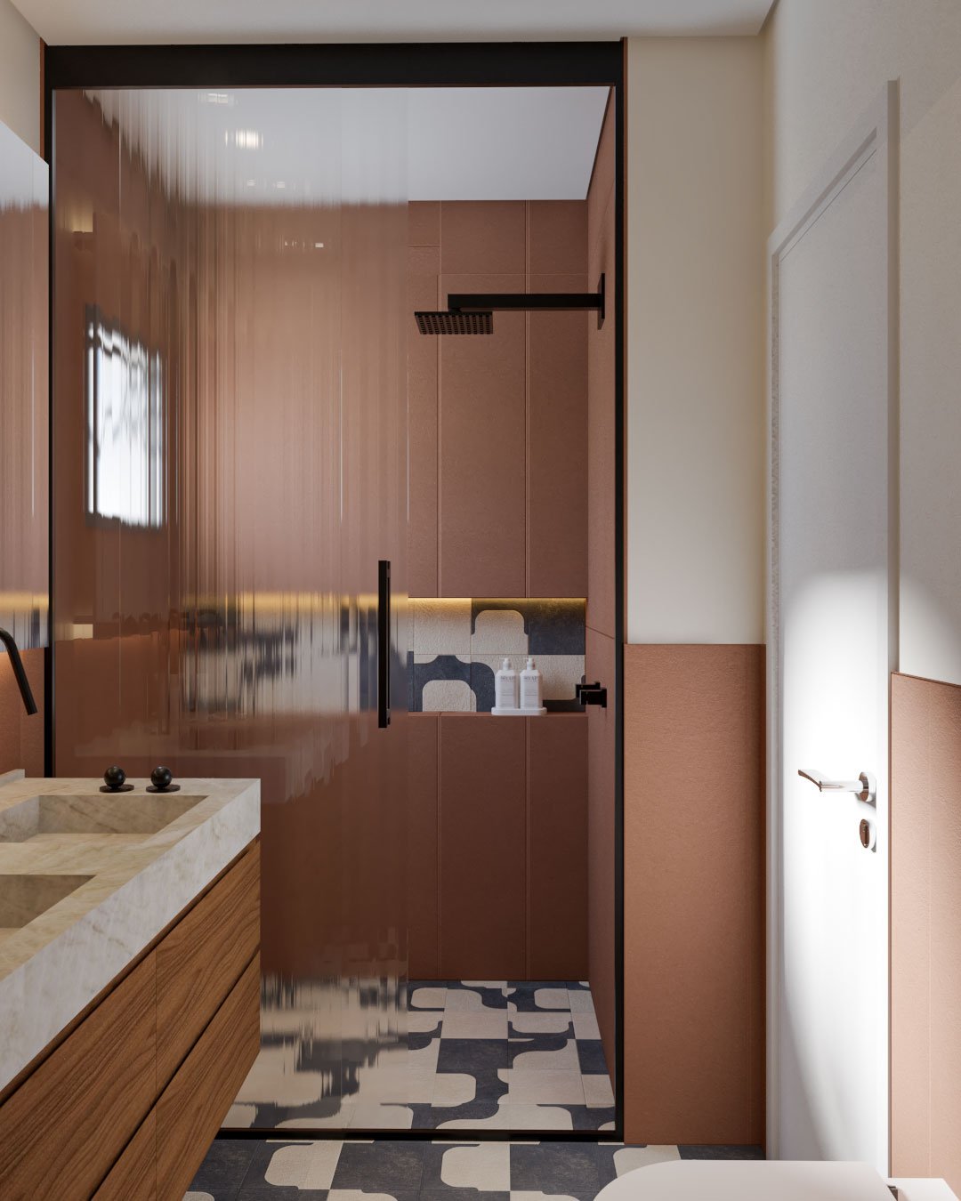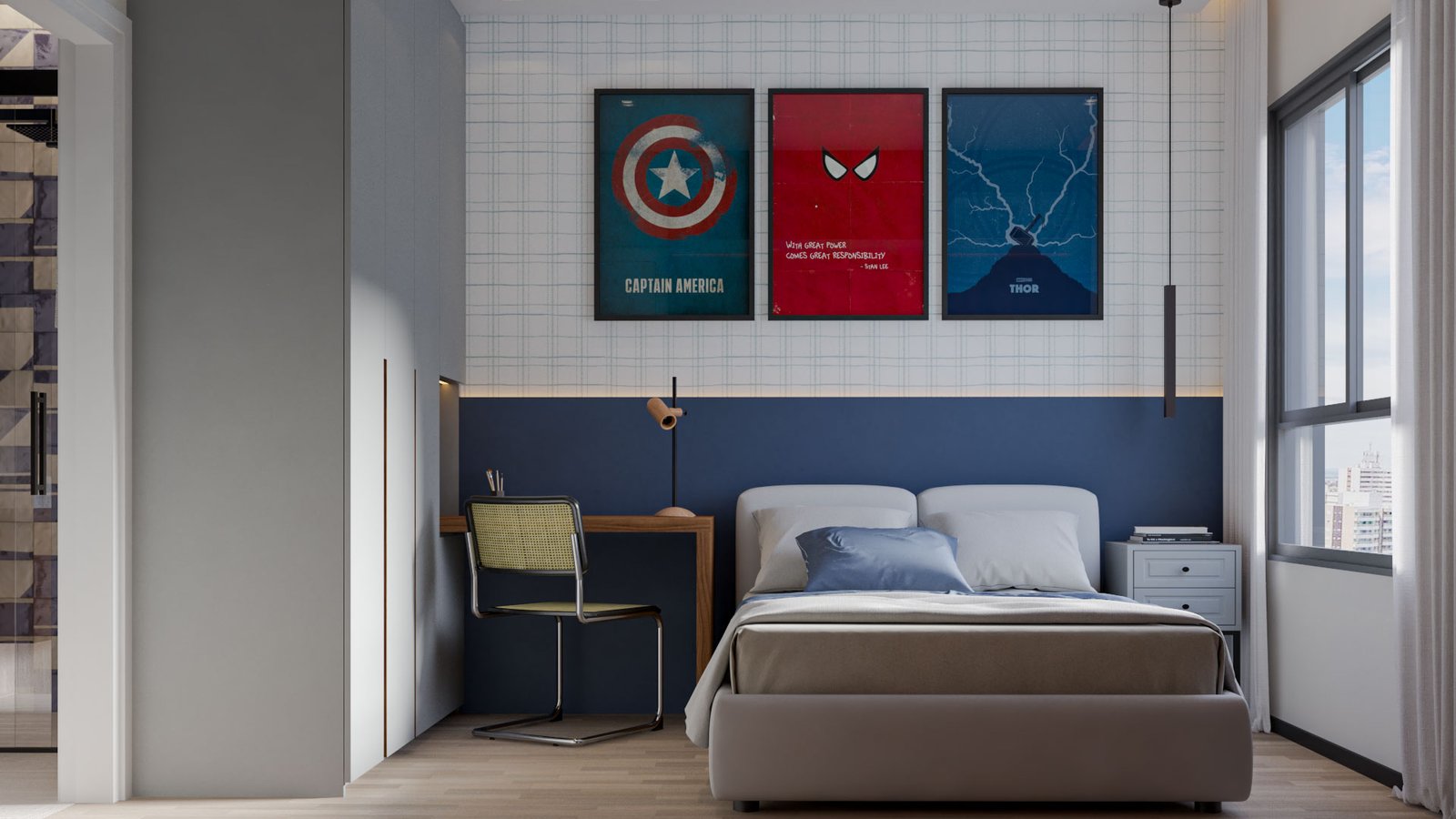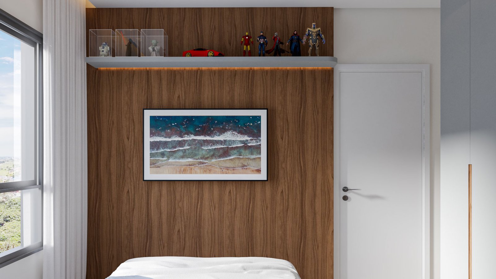 Projeto inspirado no modernismo brasileiro com toques contemporâneos, que valoriza materiais naturais, linhas limpas e uma paleta atemporal. Os ambientes unem elegância e funcionalidade: living com peças de design e personalidade, varanda gourmet intimista, cozinha em mármore e madeira, lavanderia integrada, lavabo em quartzito, quartos infantis temáticos e uma suíte master sofisticada com detalhes em pedra e iluminação aconchegante.