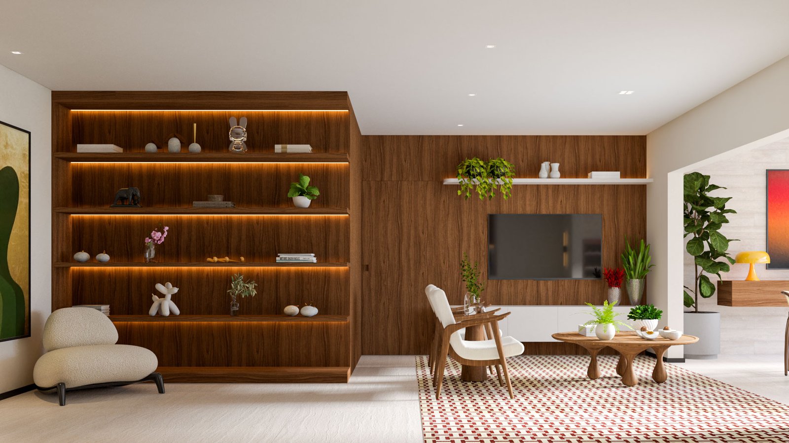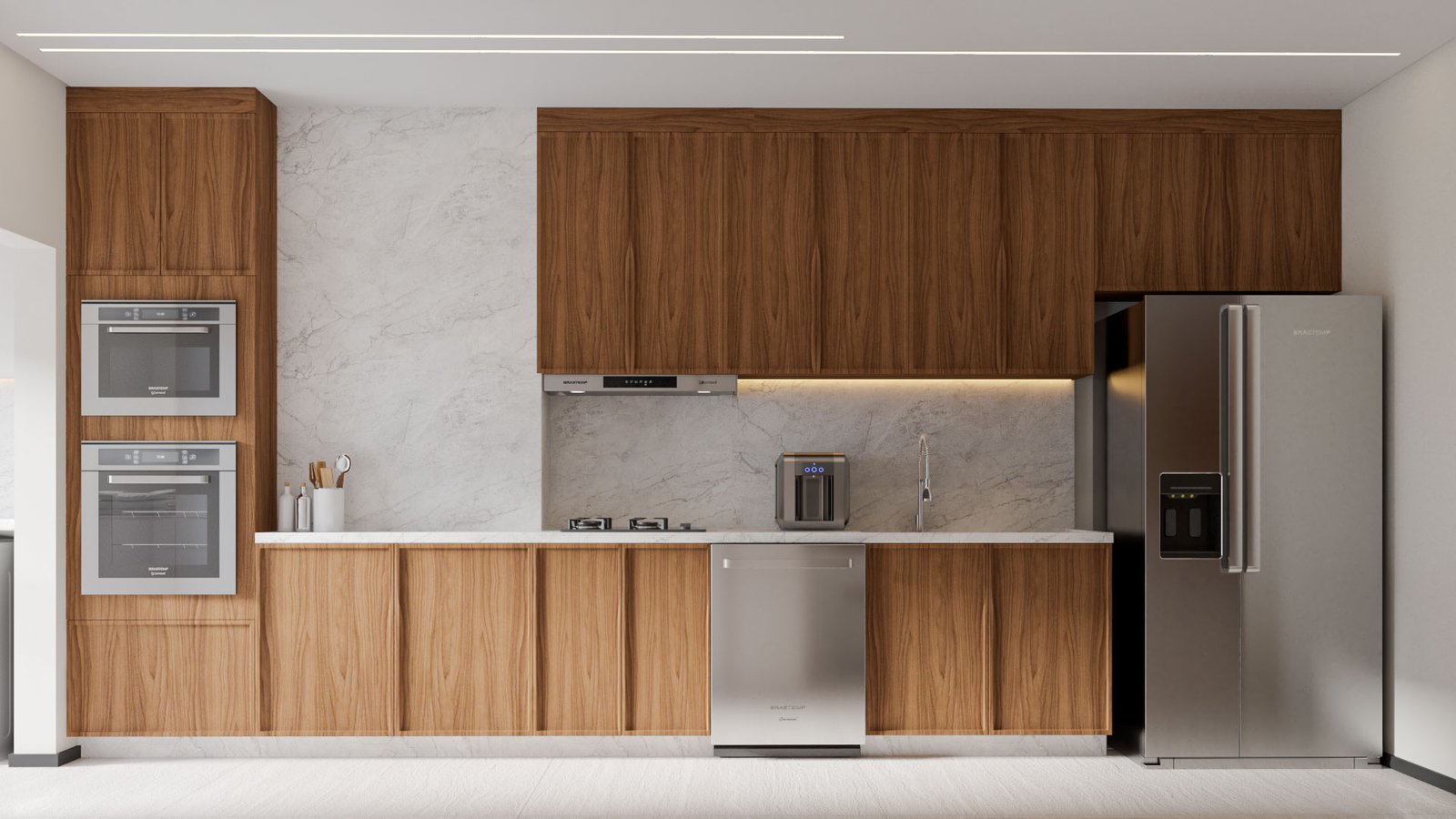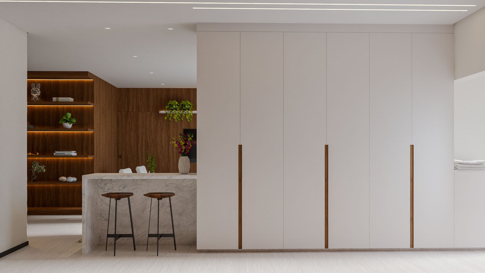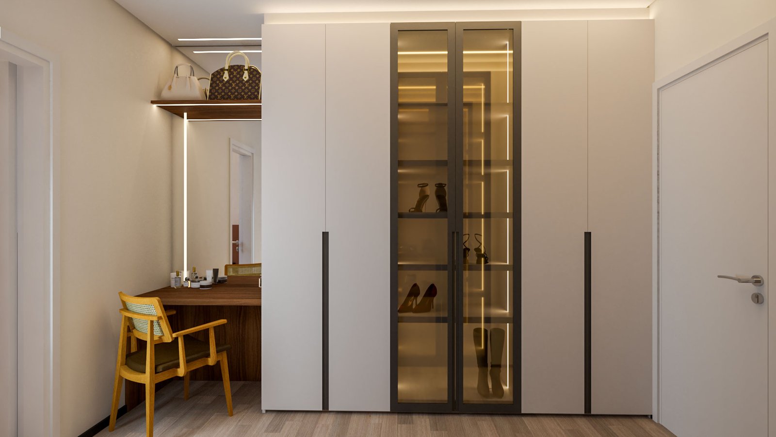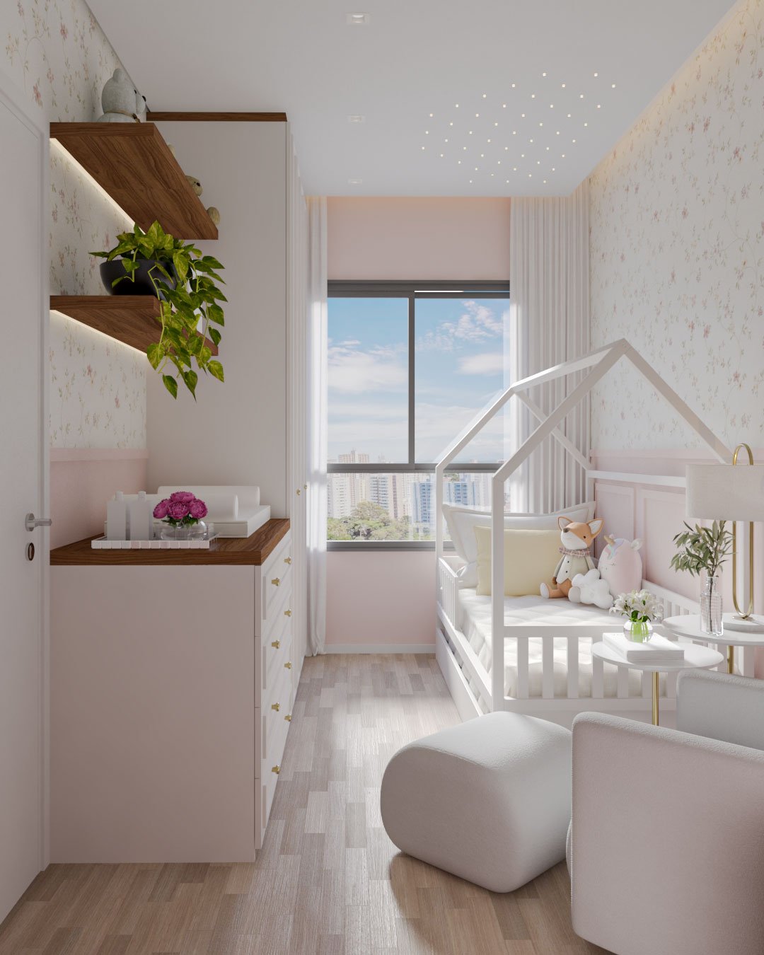 Projeto inspirado no modernismo brasileiro com toques contemporâneos, que valoriza materiais naturais, linhas limpas e uma paleta atemporal. Os ambientes unem elegância e funcionalidade: living com peças de design e personalidade, varanda gourmet intimista, cozinha em mármore e madeira, lavanderia integrada, lavabo em quartzito, quartos infantis temáticos e uma suíte master sofisticada com detalhes em pedra e iluminação aconchegante.